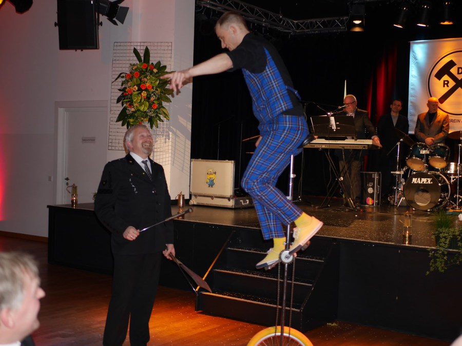 Der Comedy-Jongleur „Philipp Dammer“ zeigte mit seiner One-Man-Show Artistik der Spitzenklasse. Nach eigenen Angaben machte er letztens eine Wodka-Diät und verlor in einem Monat 10 Tage. Auch der Geschäftsführer des Hauptvorstandes Ulrich Dondorf saß in der „Mitmach-Reihe“ und half bei einigen Jonglage-und Hochradartistik-Einlagen.