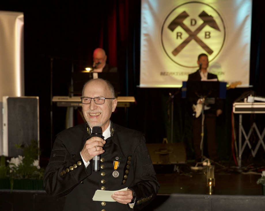 In dem voll besetzten Festsaal in Dinslaken-Lohberg begrüßte der Vorsitzende des Bezirksvereins Niederrhein Silvo Magerl denstellvertretendenBürgermeister der Stadt DinslakenThomas Groß. Als weitere Ehrengäste wurden der RDB-Geschäftsführer im Hauptvorstand Ulrich Dondorfund die Ehrenmitglieder des Bezirksvereins Dietrich Balduhn und Alwin Erdmann sowie die Ehrengäste des Bergwerks Walsum, Albert Bazanella und Klaus Braick willkommen geheißen. Auch der Chorleiter des Glückauf-Chors Walsum Norbert Grundhöfer wurde wegen seiner Verbundenheit zum BV-Niederrhein gesondert genannt.