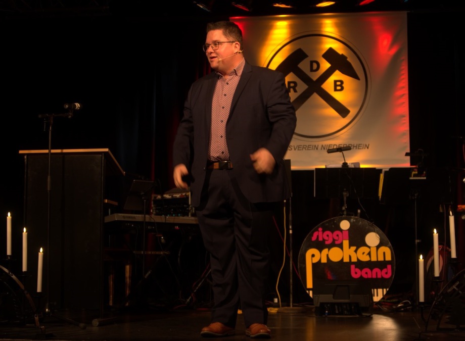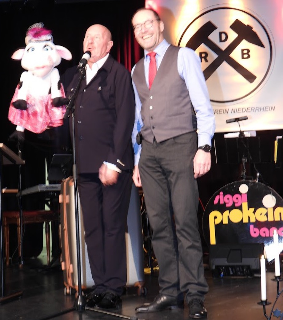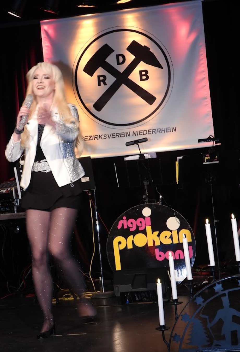 Beim letzten Showact des kurzweiligen Abendprogramms animierte die Sängerin Jenny Budek mit deutschen Schlagern zum Mitsingen. Viele Lieder der Schlagersängerin Helene Fischer, aber auch ältere Schlager gehörten zu Ihrem Repertoire und so wurde geschunkelt und mitgemacht. Nach einigen Zugaben und einem tollen Medley stimmte der gesamte Saal das Steigerlied an. Traditionell endet dieses mit der Verköstigung des Bergmannsschnaps: „Prost Bergleut`!“