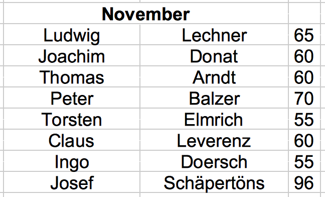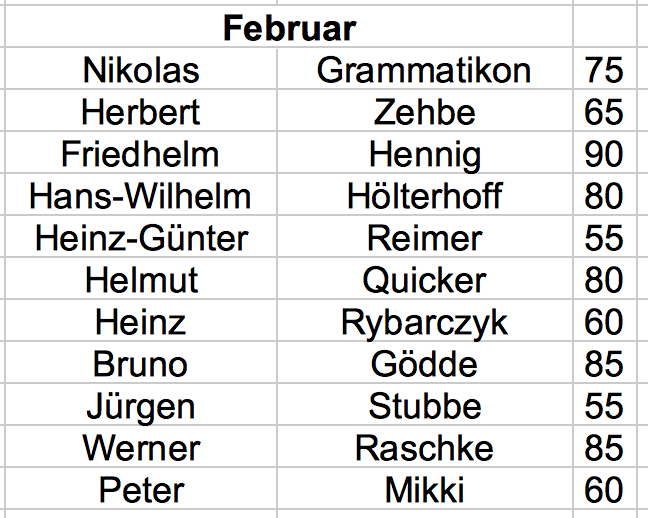 Werner Breiing verstorben am 20.02.2018 87 Jahre Ludwig Harder verstorben am 31.01.2018 89 Jahre Josef Knipps verstorben am 22.12.2017 87 Jahre Hans Günter Lomp verstorben am 21.09.2017 86 Jahre Gerhard Quetting verstorben am 05.09.2017 90 Jahre Rudolf Boscher verstorben am 20.07.2017 82 Jahre Wolfgang Albrecht verstorben am 27.05.2017 73 Jahre Klaus Meyer zu Düttingdorf verstorben am 14.05.2017 80 Jahre Gustav Backhauß verstorben am 09.02.2017 81 Jahre
